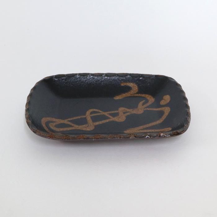 長崎県佐世保の工房(沙器窯)でスリップウエアを製作されている柳瀬俊一郎さんのマットブラック長方6寸プレート/抽象です。