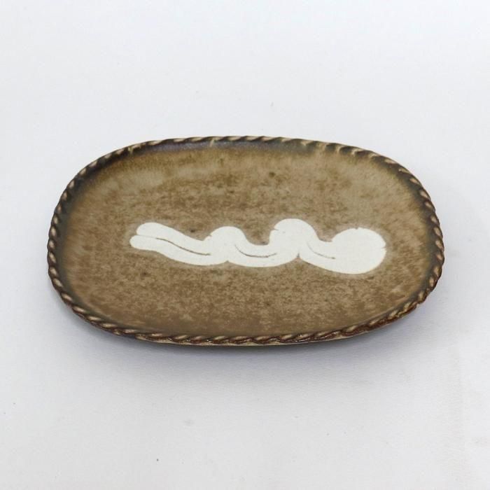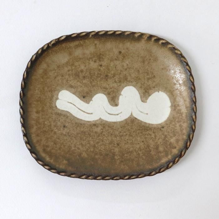 長崎県佐世保の工房(沙器窯)でスリップウエアを製作されている柳瀬俊一郎さんの【限定】マットスリップ角丸プレート/波す。