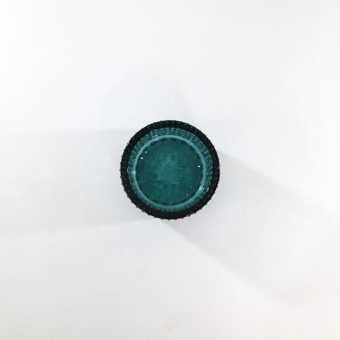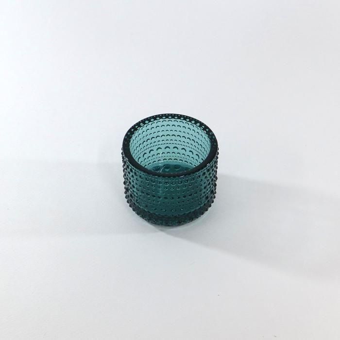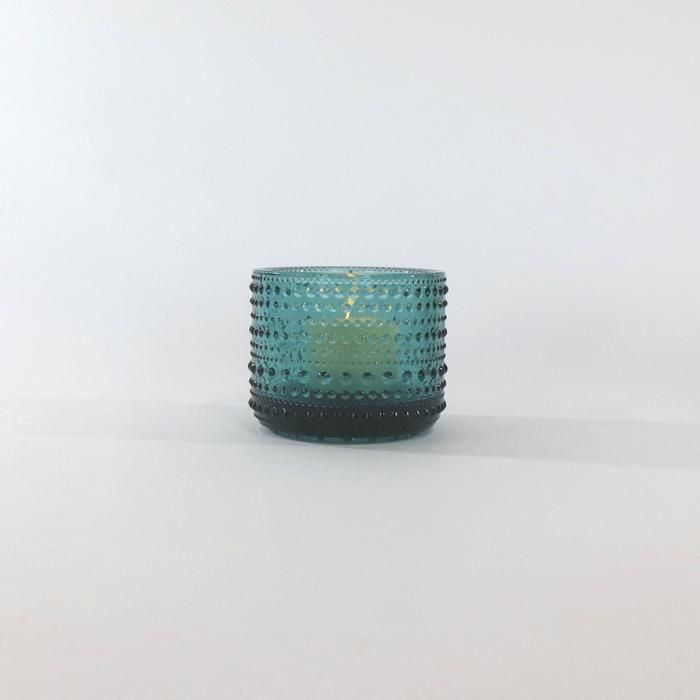 しっかり厚いガラスと表面の雫文様がキャンドルの炎の揺らぎの美しさを一層引き立ててくれます。