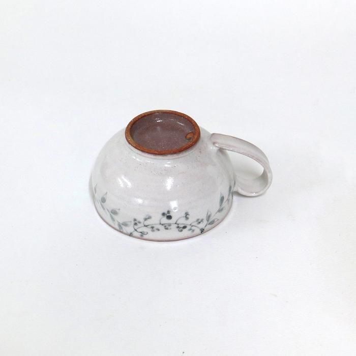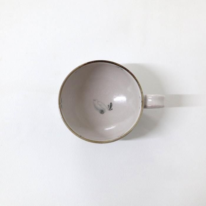 九谷焼技術研修所で学び、九谷作家の松本佐一さんのところで修行された福田栄一/SugaryCeramicsの安南手スープマグ/鳥です。