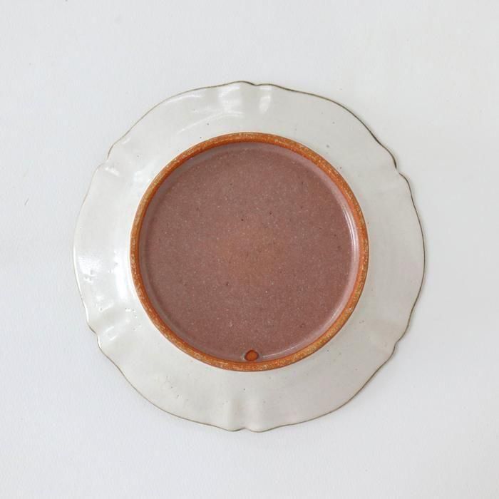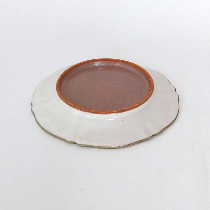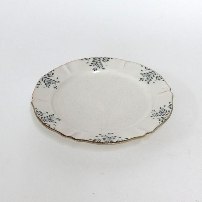 縁をつまんだような変形の輪花に成形された花リムプレートです。