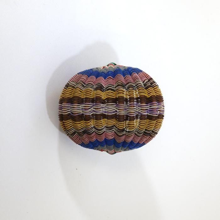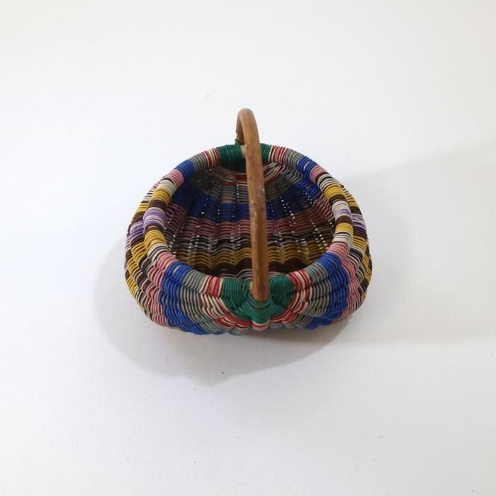 ビニールコーティングされた電線を再利用したサスティナブルなバスケットです。