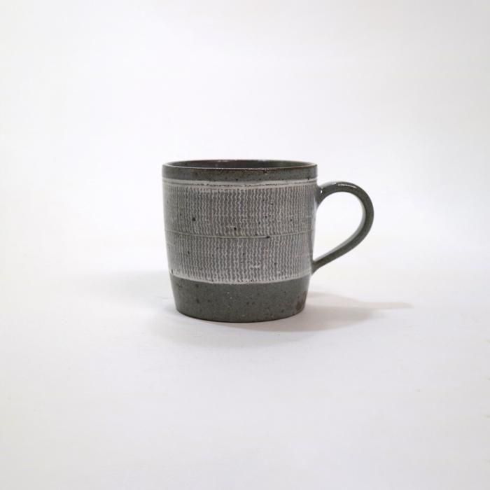 佐賀県立有田窯業大学にて陶芸の基礎を学び、有田の窯元に約4年間勤務された後、長野県長門町で作陶されている戸津圭一郎さんのリニューアルしていただいた象嵌マグ/赤貝です。