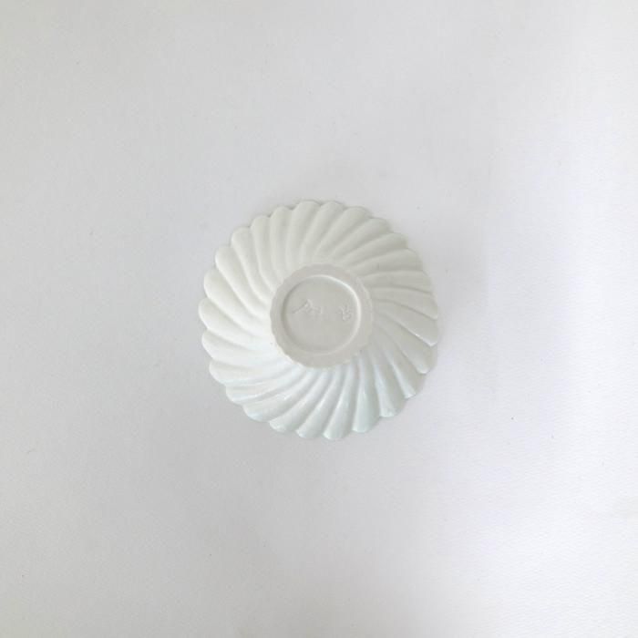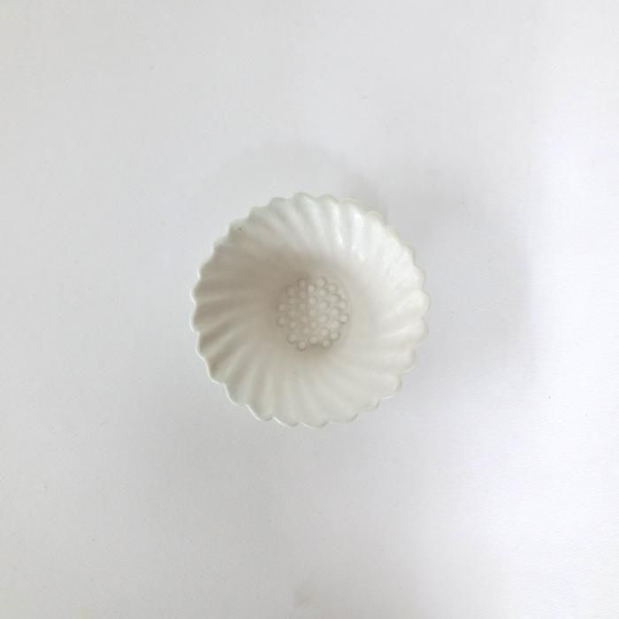菊花小鉢は中村かおりさんの拘りの「白」の生地を名称通りに側面は多弁の花弁となっています。