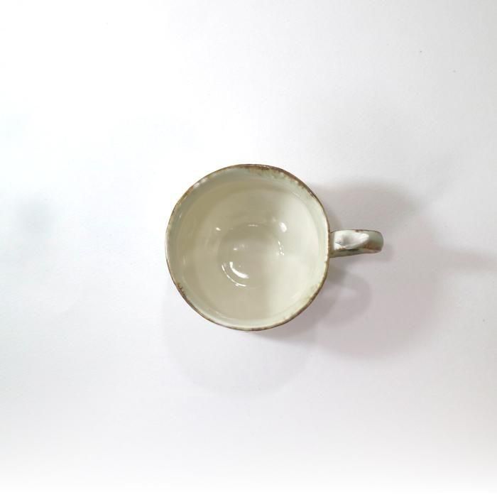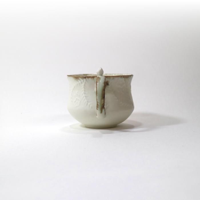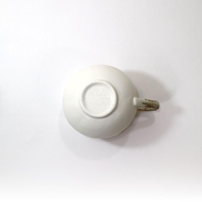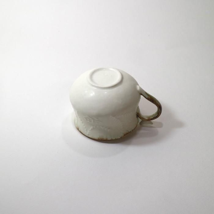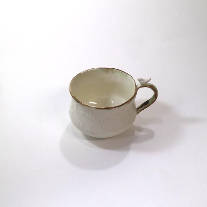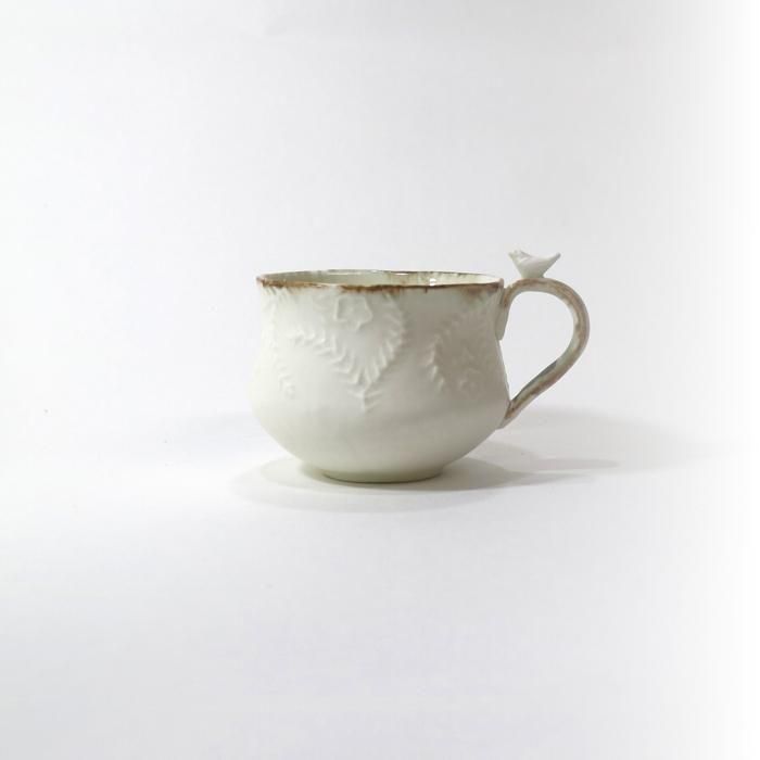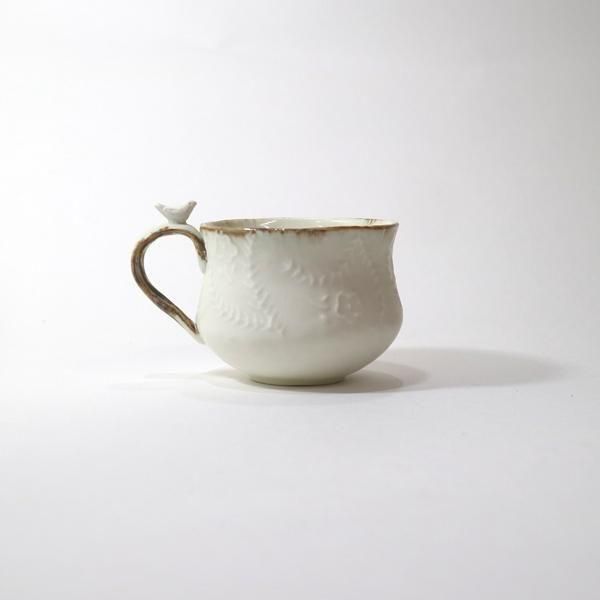 沖縄県立芸術大学陶芸コース卒後、沖縄の工房を経て、現在千葉の工房にて作陶されています中村かおりさんが当店用にオリジナル製作いただいた鳥付きローズマリーマグ/白です。