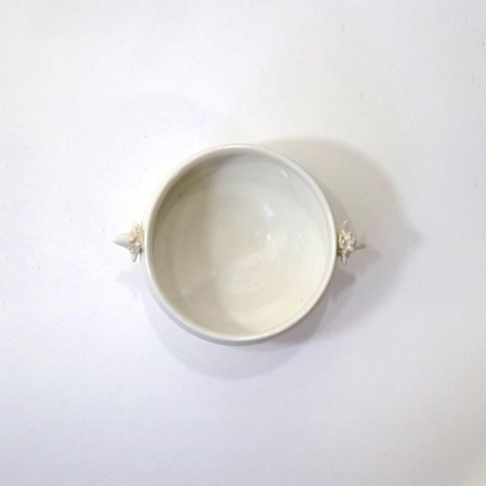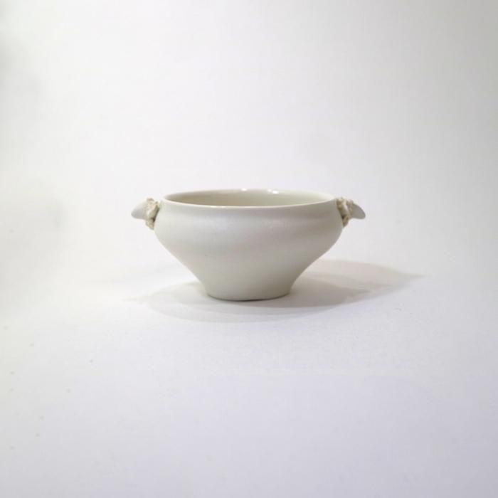 沖縄県立芸術大学陶芸コース卒後、沖縄の工房を経て、現在千葉の工房にて作陶されています中村かおりさんのひつじのスープボウル/両閉じです。
