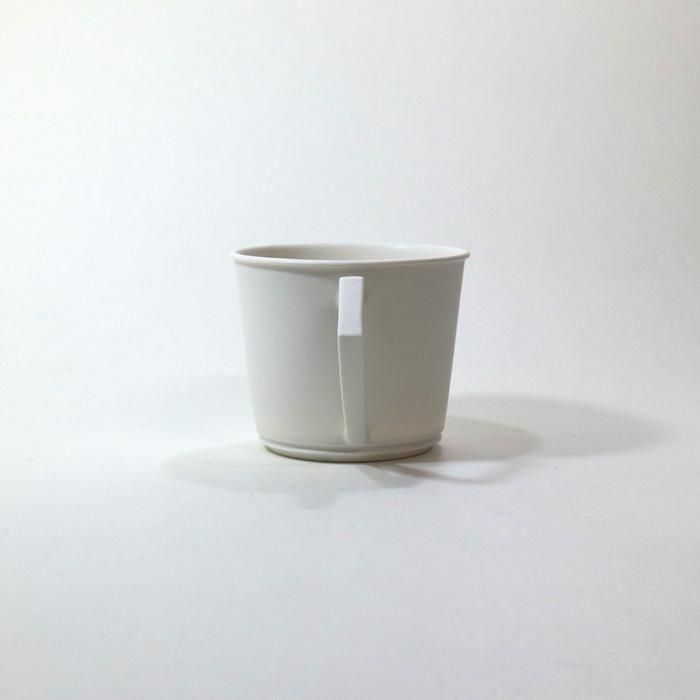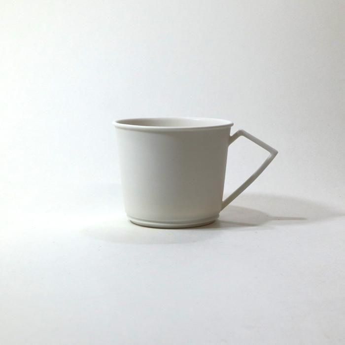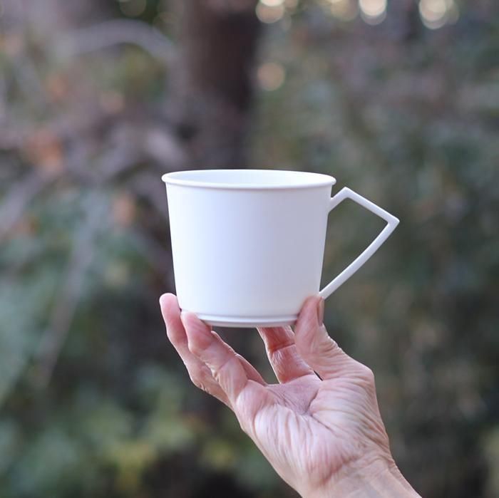 東京デザイナー学院でグラフィックデザインを学んだ後、砥部の自宅工房にて白磁の器を中心に制作されている濱岡健太郎さんのマグ/角手/艶消しです。