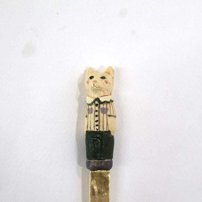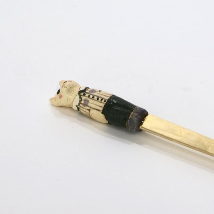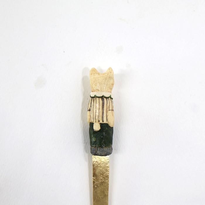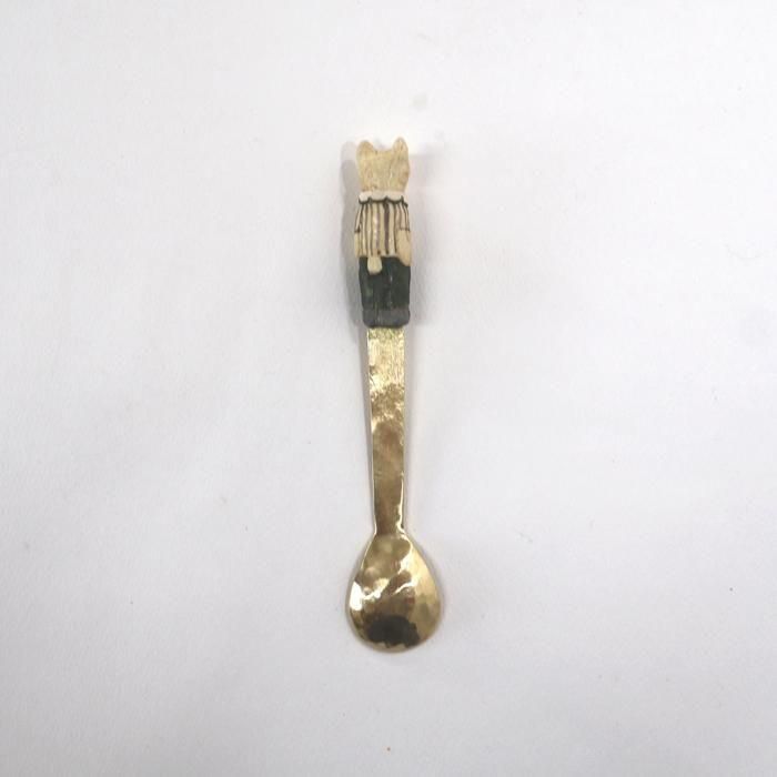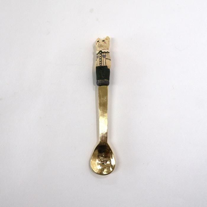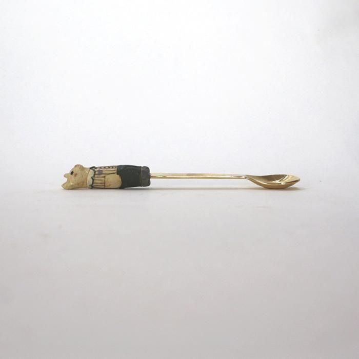 ヘッドは沖縄県立芸術大学陶芸コース卒後、沖縄の工房を経て、現在自宅工房にて作陶されています中村かおりさん、金属部分は埼玉の工房にて「口当たりの良い、楽しいカトラリー」を心がけて製作されていますitto/イットさんとのコラボレーション製作のどうぶつスプーン/くま/ストライプシャツです。