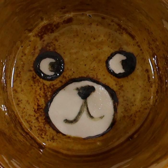 沖縄県立芸術大学陶芸コース卒後、北千住の工房にて作陶されています中村かおりさんのくまが左を見ているくまカップ/Lです。
