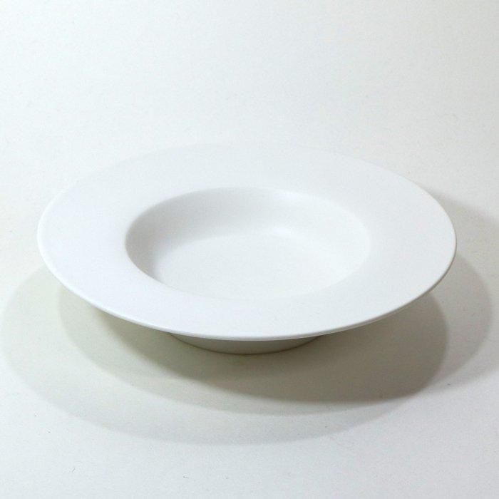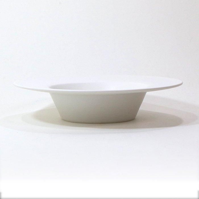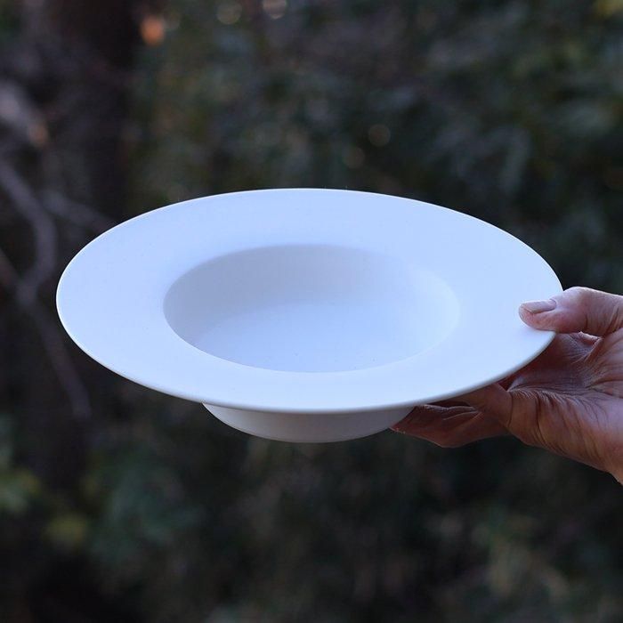東京デザイナー学院でグラフィックデザインを学んだ後、砥部の自宅工房にて白磁の器を中心に制作されている濱岡健太郎さんのリムスープ皿/艶消しです。
