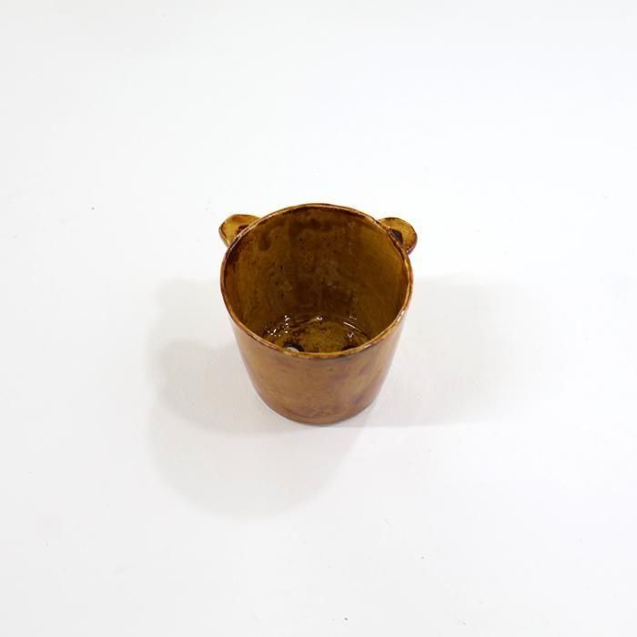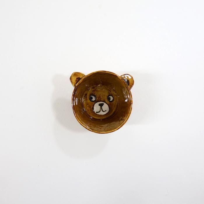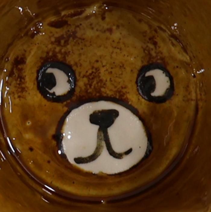 沖縄県立芸術大学陶芸コース卒後、沖縄の工房を経て、北千住の工房にて作陶されています中村かおりさんのくまが右を見ているくまカップ/Rです。
