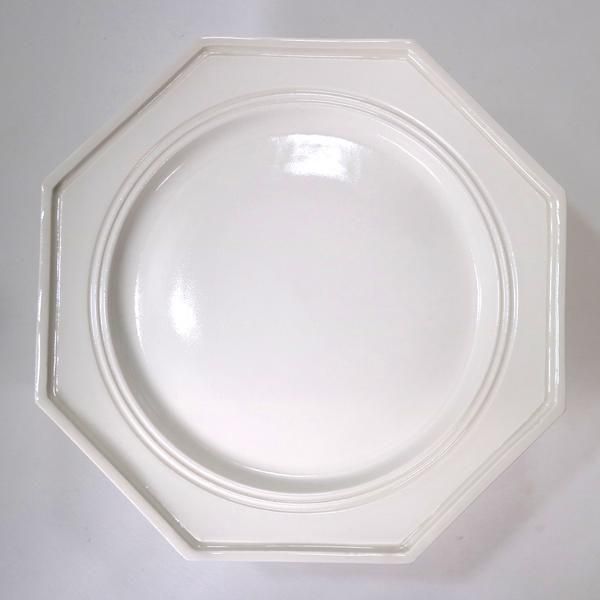 テーブルの八角形は八角プレートとほぼ同じですが、八角プレートは見込みとリムの段差が大きくなっていますが、コンポート(ドルチェ)スタンドは使用目的としてそんなに深さは不要ですのでほんの少し浅めに設定してあります。