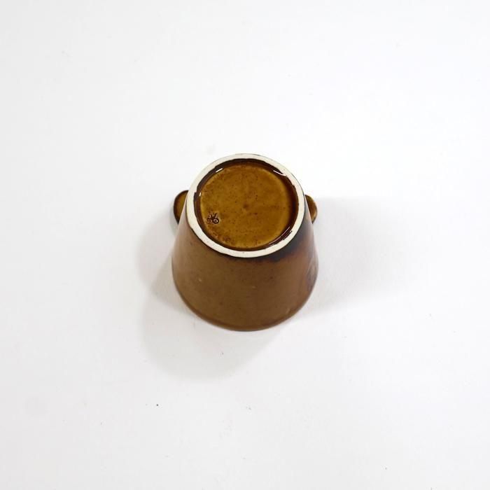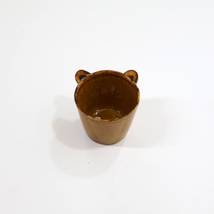 沖縄県立芸術大学陶芸コース卒後、沖縄の工房を経て、北千住の工房にて作陶されています中村かおりさんの上から見ると下を向いているくまカップ/Dです。