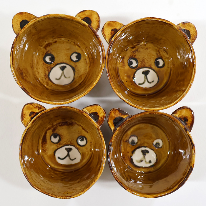 今月末(10月31日(金)~11月6日(木))にカトラリーのitto/イットさん、青のガラス器の逢見美帆さん、練り込みの器の田中ちあきさんに加えて友情出演のムリーニという技法でガラス器を製作されている竹下芽衣さんとご一緒に”Girly Girly展”に出品いただく中村かおりさんのくまカップが届きました。