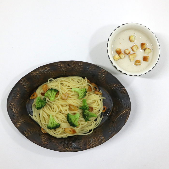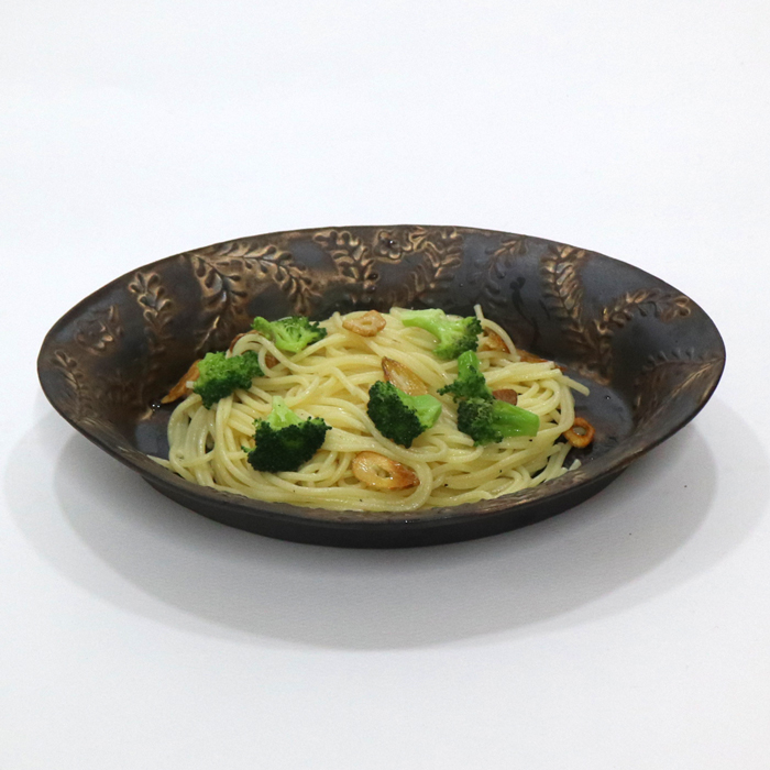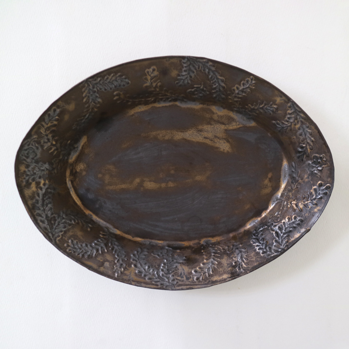 器は、中村かおりさんのローズマリーオーバル深皿/ブロンズです。